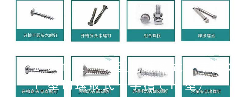 ④頭型 :用字母來表示頭型的種類,可參看前文常用螺釘頭型分類。 ⑤牙型/尾型 : 用字母來表示牙型/尾型的種類,可參看前文“常用螺釘牙型/尾型分類”。 ⑥槽型 :參看前文“我司常用螺釘槽型分類”,十字槽或無槽(如沖六角頭螺